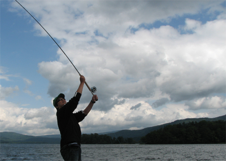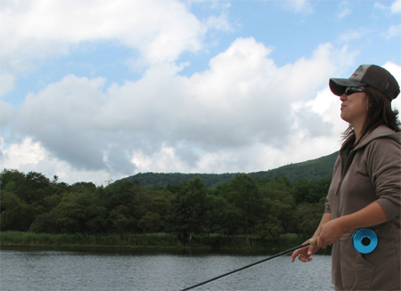 隊長のダブルハンドを借りてキャスティング練習