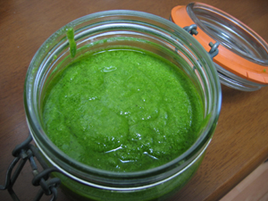 摘芯したバジルはこれからジェノベーゼソースに