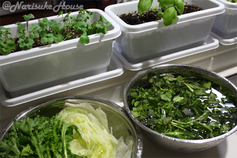 窓際菜園で種から育てたバジル3苗と